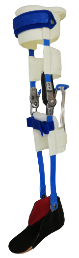 Tutore coscia-gamba-piede costruito su calco in gesso realizzato in polipropilene. Permette di stabilizzare il ginocchio durante la stazione eretta e consente uno sblocco dell’articolazione manuale. Grazie all’articolazione regolabile alla tibio-tarsica il paziente riesce anche a deambulare con maggiore facilità in presenza di piccoli dislivelli del terreno come salite e discese.